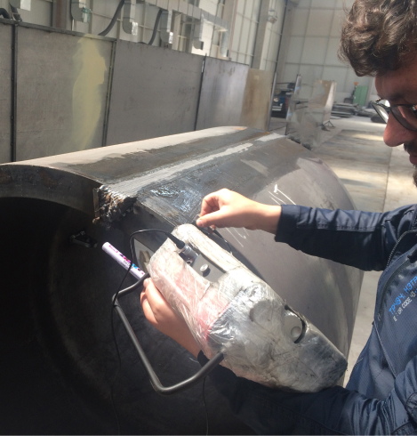 Quality Control personnel perform pre-welding measurement checks. Approved parts are transferred to the welding line for welding processes. The parts are welded by our certified welders in accordance with the welding plans and WPSs for each relevant part. Measurement checks of the parts are performed after welding and adjustments are made as necessary.Parts the welding processes of which are complete are transferred to the levelling line. The levelling of the parts are performed by our expert staff. Following this process, the NDT tests as requested by the customer are carried out.