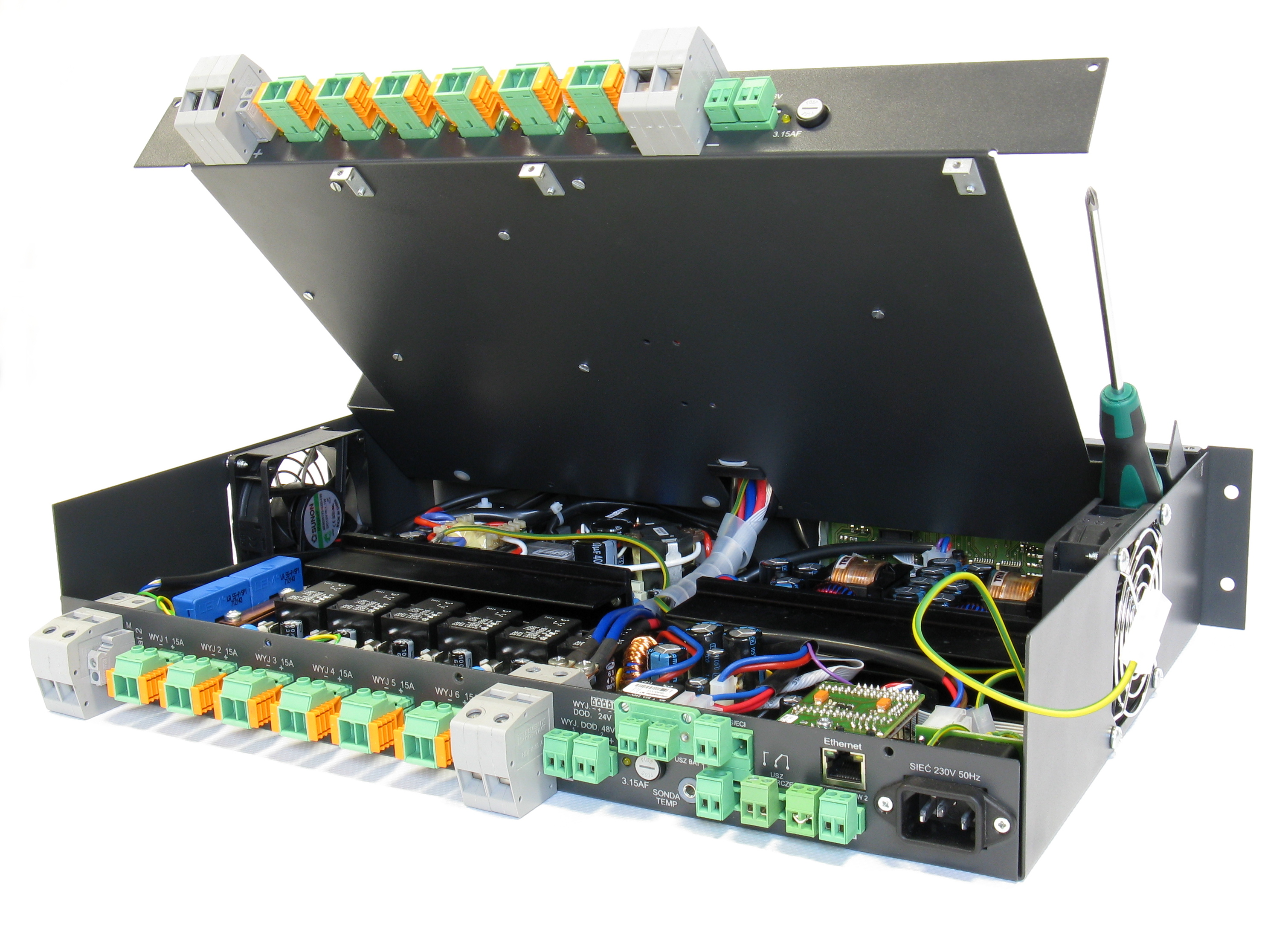 The power supplies ZDSO400-DR2, ZDSO400-DR4, - are dedicated to work in voice alarming systems (VAS). They charge and supervise the external backup battery bank of 24V or 48V in compliance with the EN 54-4+A2 standard.