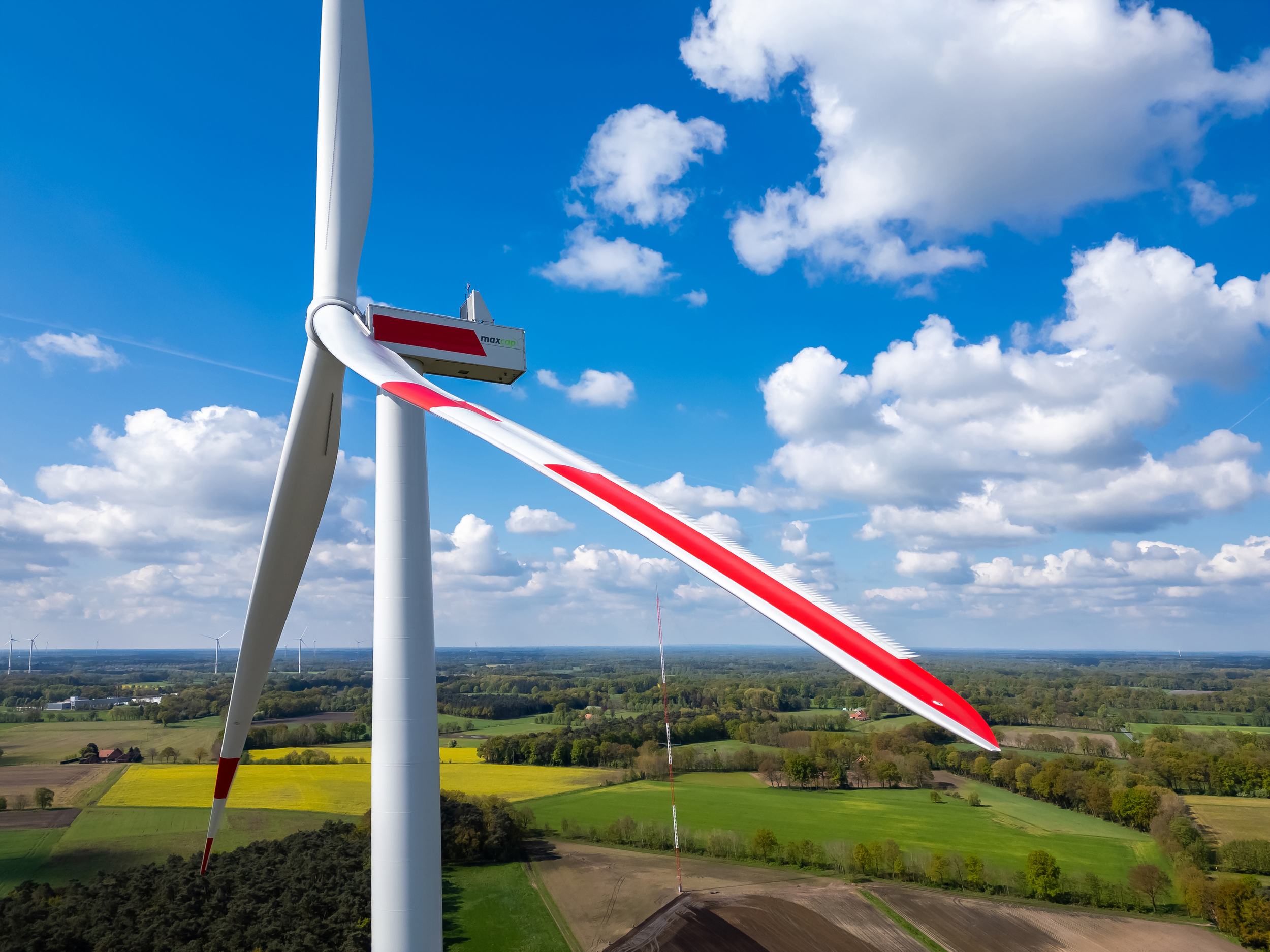 Successive improvements based on the know-how and extensive experience of the employees have led to professional and robust solutions, which have been incorporated in particular into the windwise’s own product, a base-load-optimized wind turbine with a rated output of 2.3 MW and a rotor diameter of 141 m, called maxcap. This wind turbine achieves a high number of full-load hours even at low-wind-speed sites and is therefore particularly suitable for net-metering-projects and applications with special requirements, such as electrolysis projects, seawater desalination, etc.. Market entry in Germany has taken place and the pilot plant has been in operation since the beginning of 2024. Further projects in Germany are under development.
