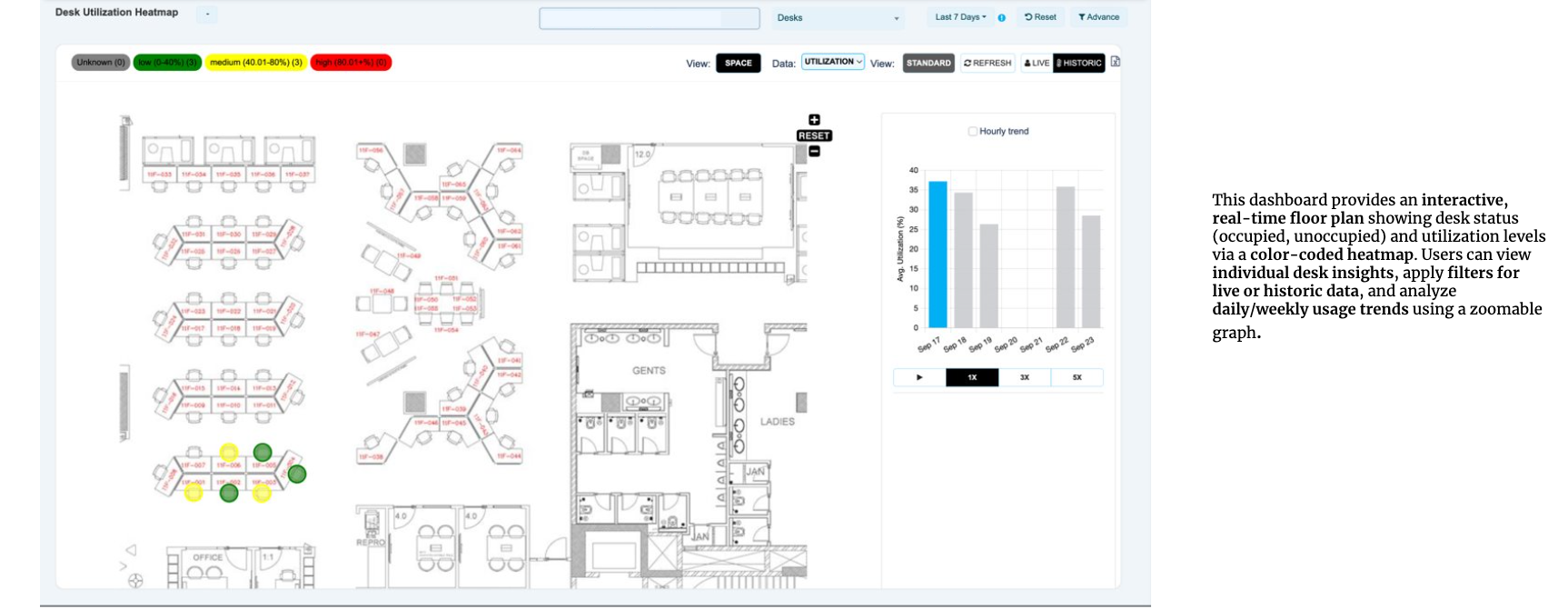 We offer a real time enabled software platform to see whats going on! Who can sit where, how long its been empty for - is the meeting room free? all the questions you need to ask to see how exactly your workplace is functioning.