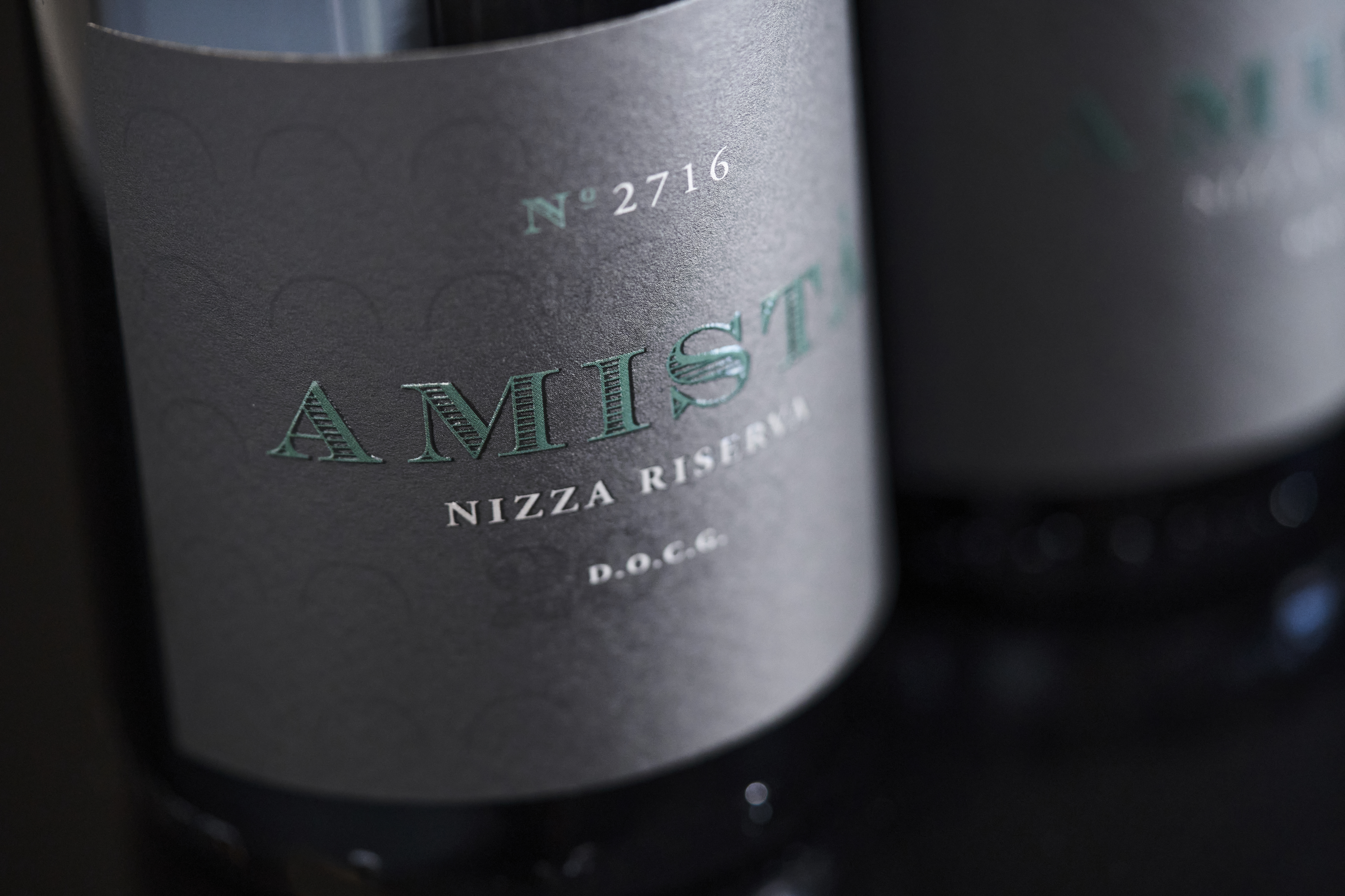Our crown jewel. Amistà Nizza Riserva DOCG is produced in extremely limited quantities from Barbera grapes grown on vines over 80 years old, rooted in the Bricco di Nizza cru — the finest expression of this appellation. Every bottle is numbered.