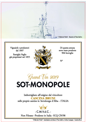 The Sot-Monopole Grand Cru vineyard is located in the Carpegna hillside, in an optimal position from Barolo but deliberately planted with Cabernet Sauvignon with screws from Pauillac en Medoc - Bordeaux, this vineyard was planted in only 1,300 vines in the far 1994 and sees his first harvest in 2015, after 21 years of waiting.