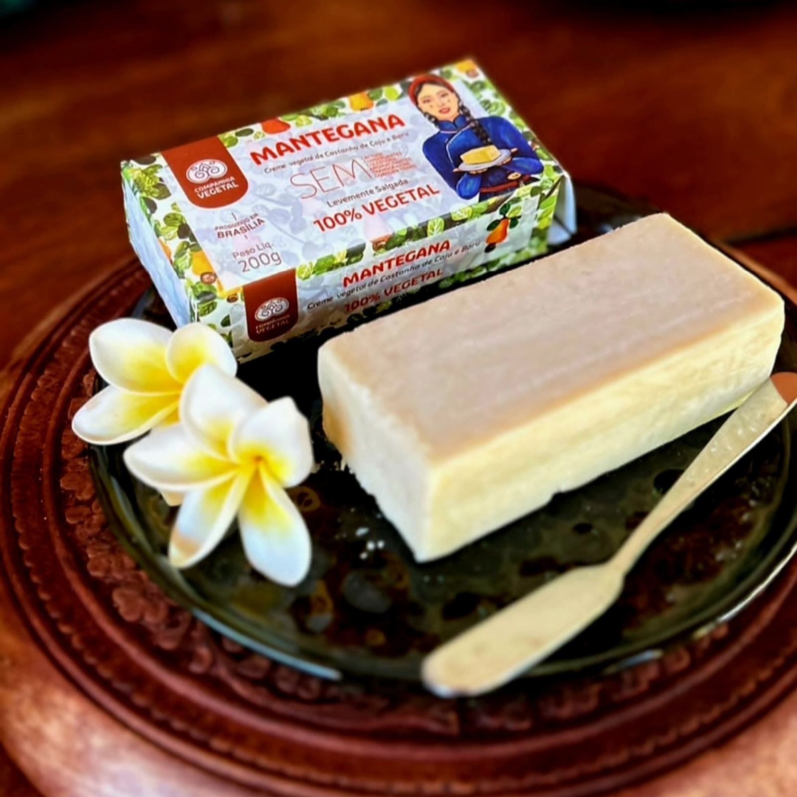Mantegana is a plant-based butter made of cashew and baru nuts using our unique fermentation process. Its fatty base is a blend of Brazil-grown, RSPO-certified palm kernel and sunflower oils. Suitable for direct consumption (on toast, bread, pancakes, etc) as well as for cooking (both salty and sweet recipes).