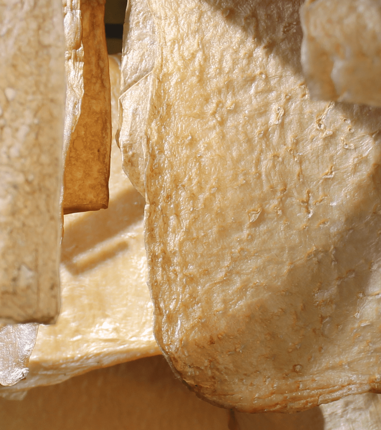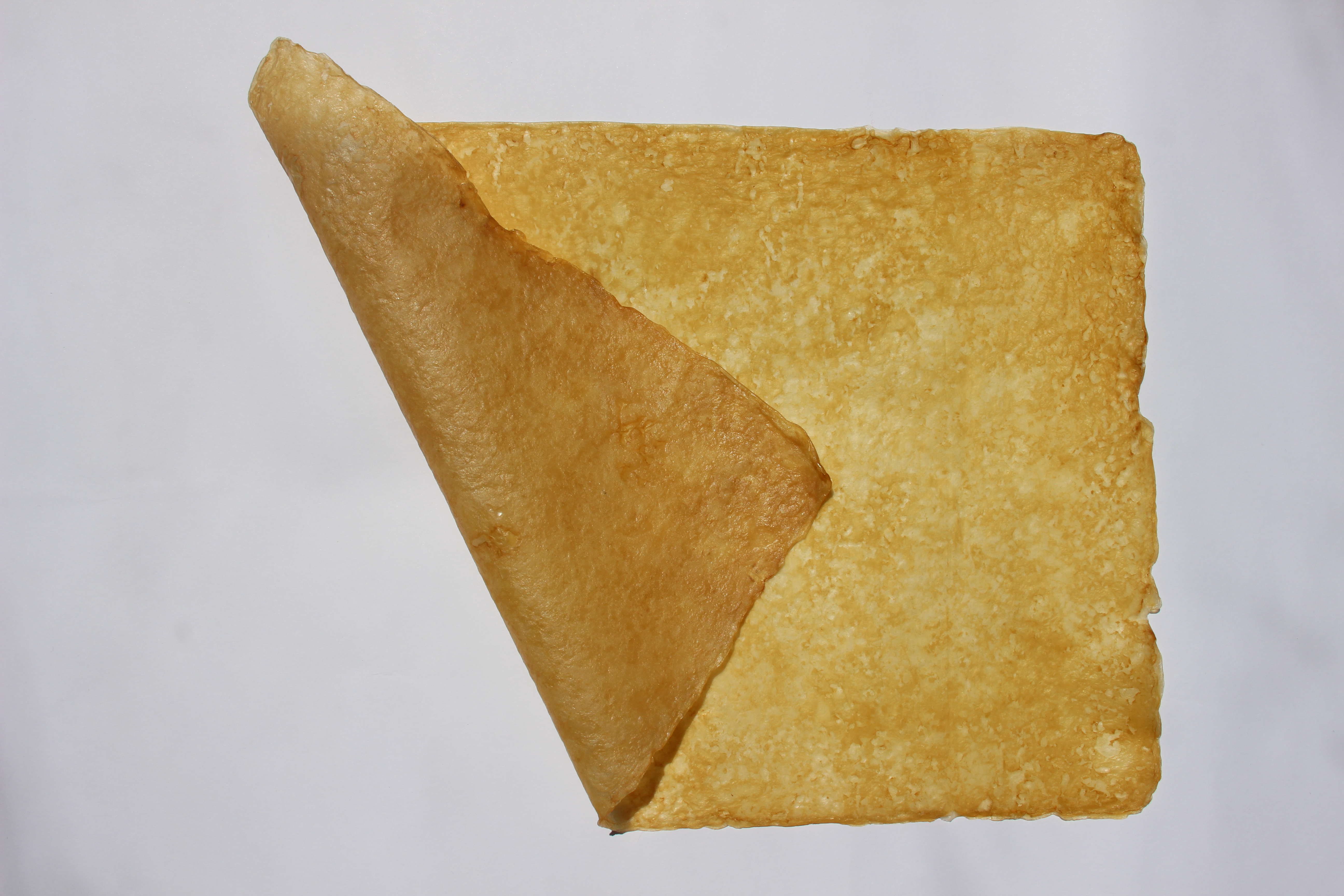P-tex bac is a vegan and biodegradable biofabric biomanufactured by bacteria. Available in original (brown) and translucent versions - the pioneering color available on the market. The biofabric sheet measures 50cm x 30cm, has a leather-like feel and appearance, UVA and UVB protection, thermal resistance and high tensile strength. The biofabric is an innovation co-produced with fermentation and is therefore ecologically integrated with regenerative and circular systems. As a sustainable alternative to leather, it prevents:
