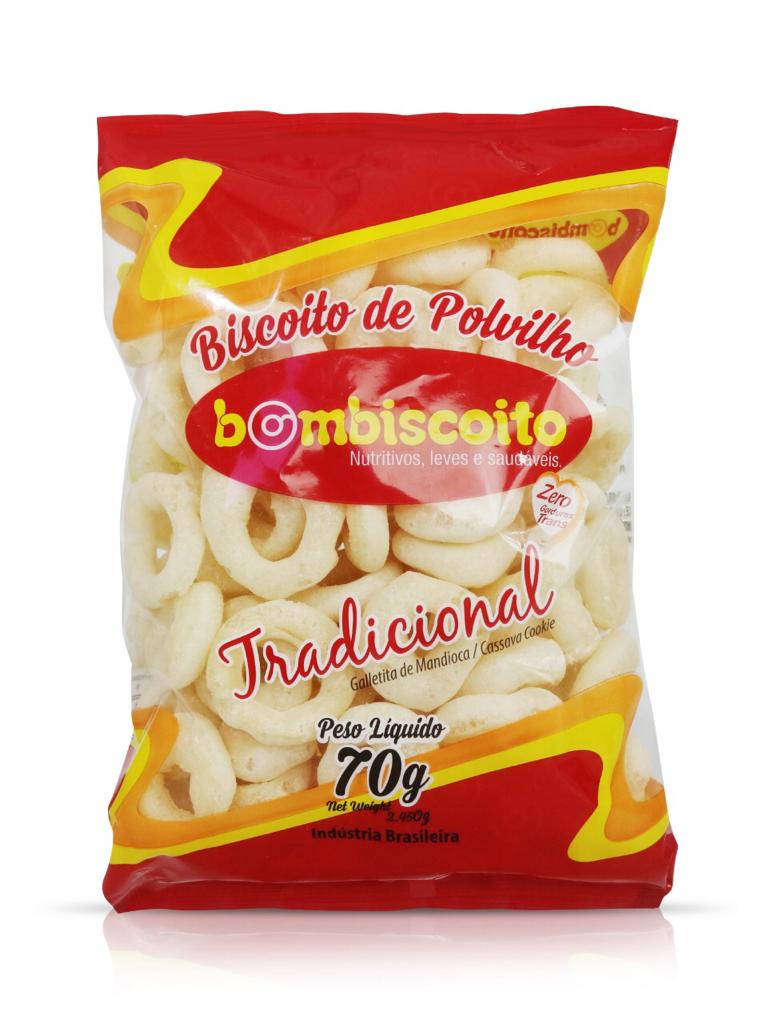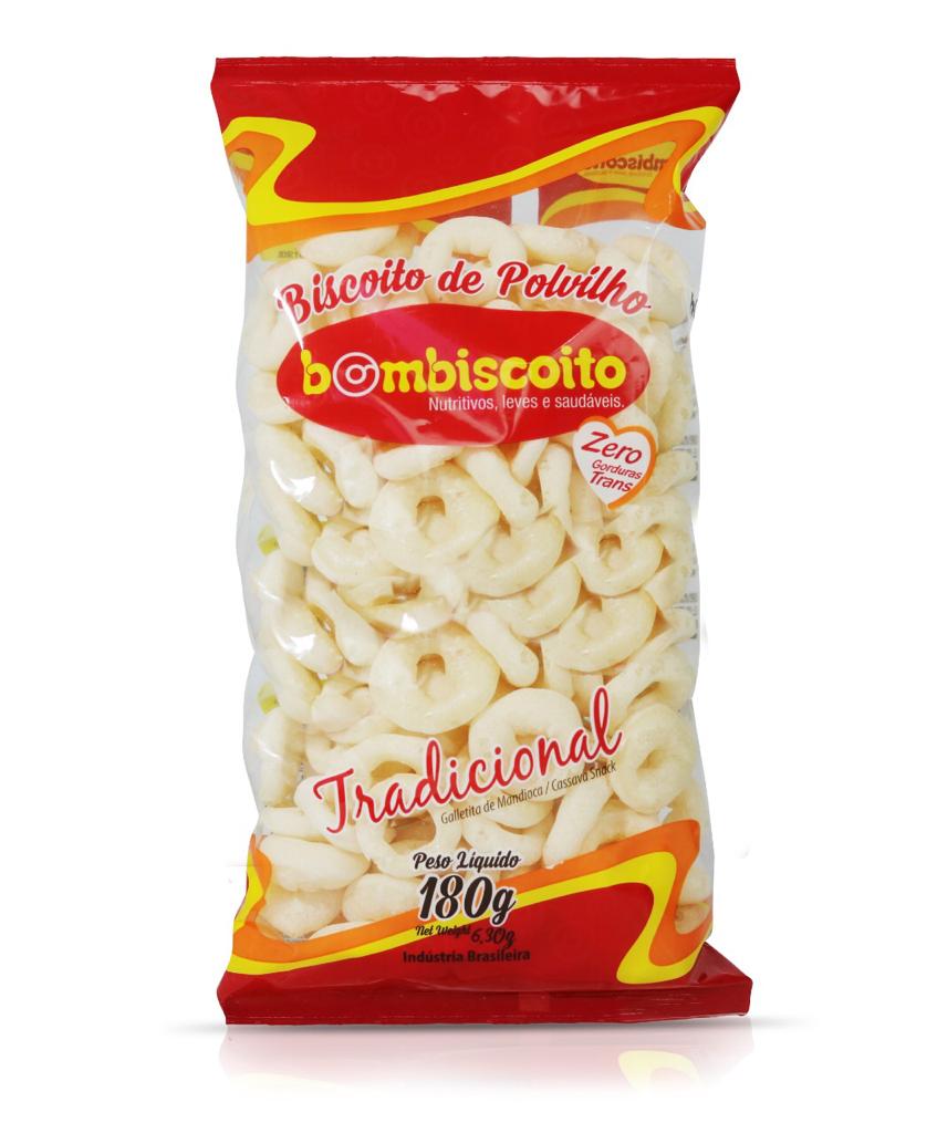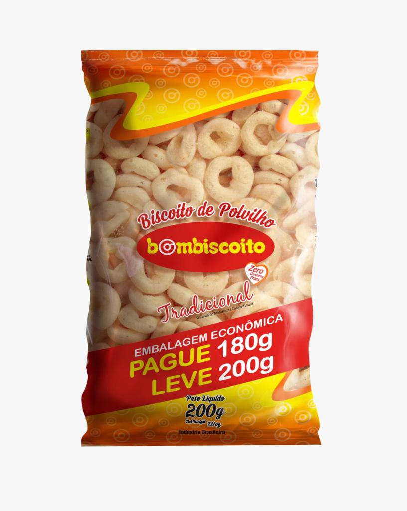 Linha de Biscoitos de Polvilho vendida em diversos tamanhos de embalagens. Sabores Tradicional, Cebola e Queijo. Também fazemos marca própria. Temos possibilidades em embalagens de 25 gramas, 70 gramas, 100 gramas, 180 gramas e 200 gramas. Como todos nossos produtos esses também não contém gluten.