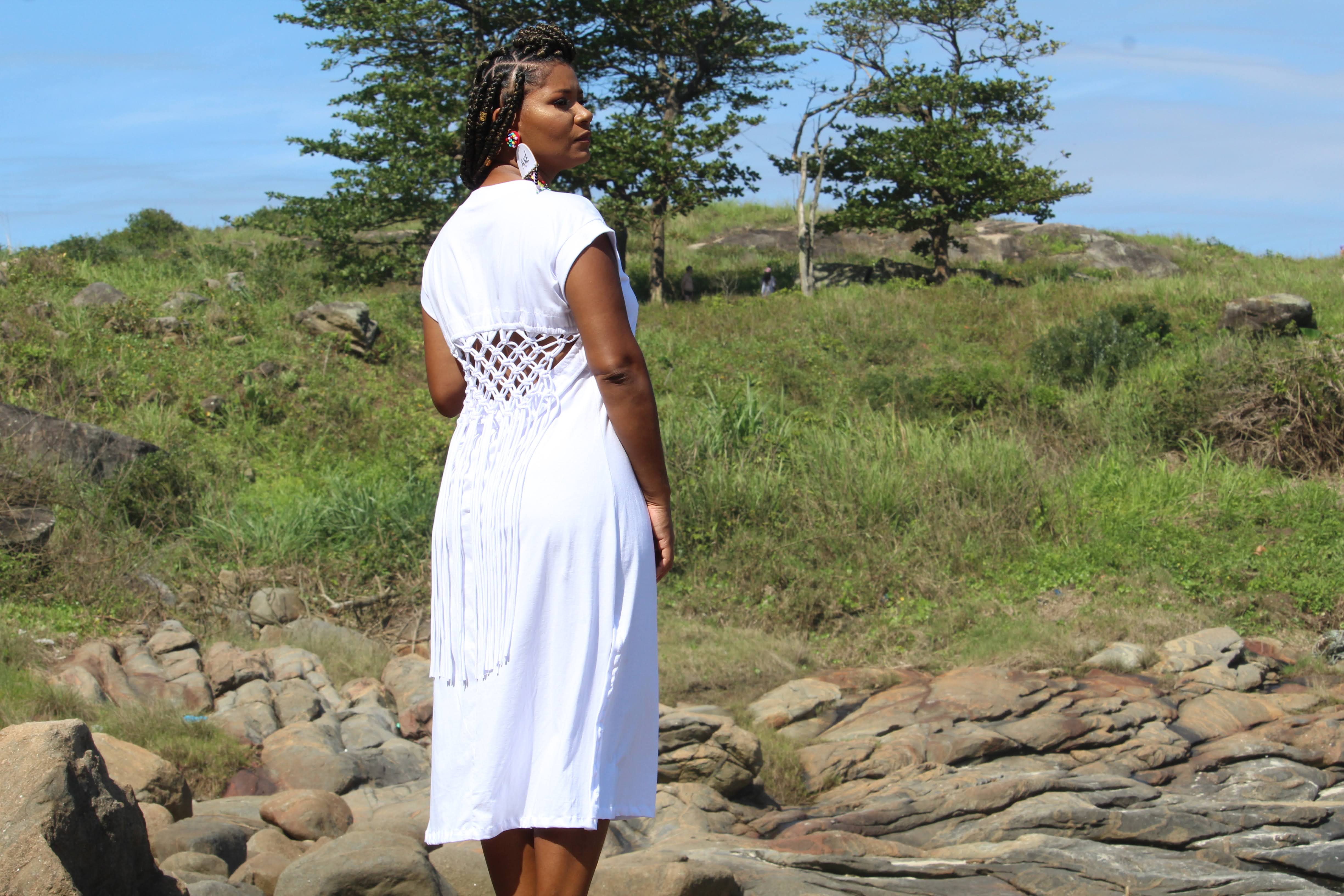 Confeccionado em malha de algodão com detalhes de macramê nas costas.
