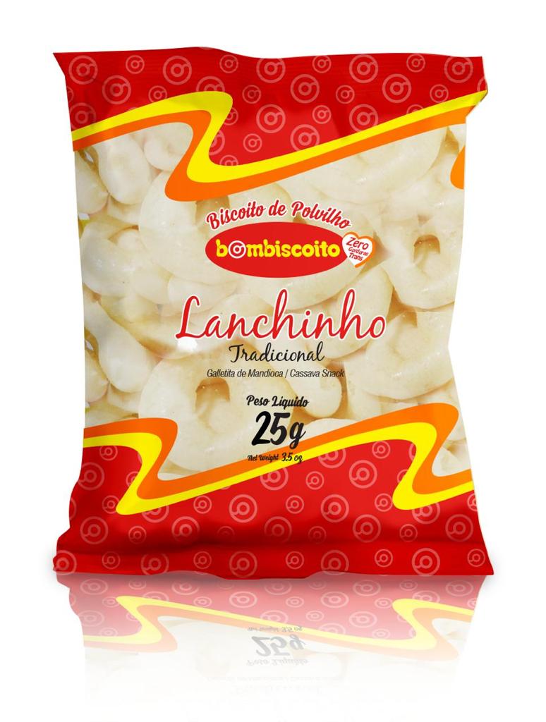 Linha de Biscoitos de Polvilho vendida em diversos tamanhos de embalagens. Sabores Tradicional, Cebola e Queijo.