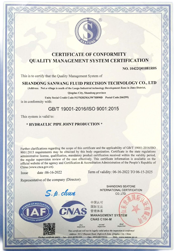 SANWANG METALS CO., LTD. is a professional supplier in the field of hydraulic adapters. Our customers are mainly major excavator brand side OEMs. It is only natural that we have also passed the inspection of major OEMs. Although we are now a Chinese company, our management style is still the same as that of a Korean company, because we were formerly a Korean company. We have a full line of self-research and development capabilities, our forging factory from raw material control, mold self-development and production, with a variety of models of presses and air hammers, can meet any customer requirements. We have 200 CNC lathes in our CNC machining factory, and we have independent R&D and technical departments that can help our customers to implement the feasibility of the products from design to production, and we adopt the method of full inspection for each product to ensure the quality of the delivered products. Surface treatment factory we use fully automated processing technology, weekly chemical testing for each link.