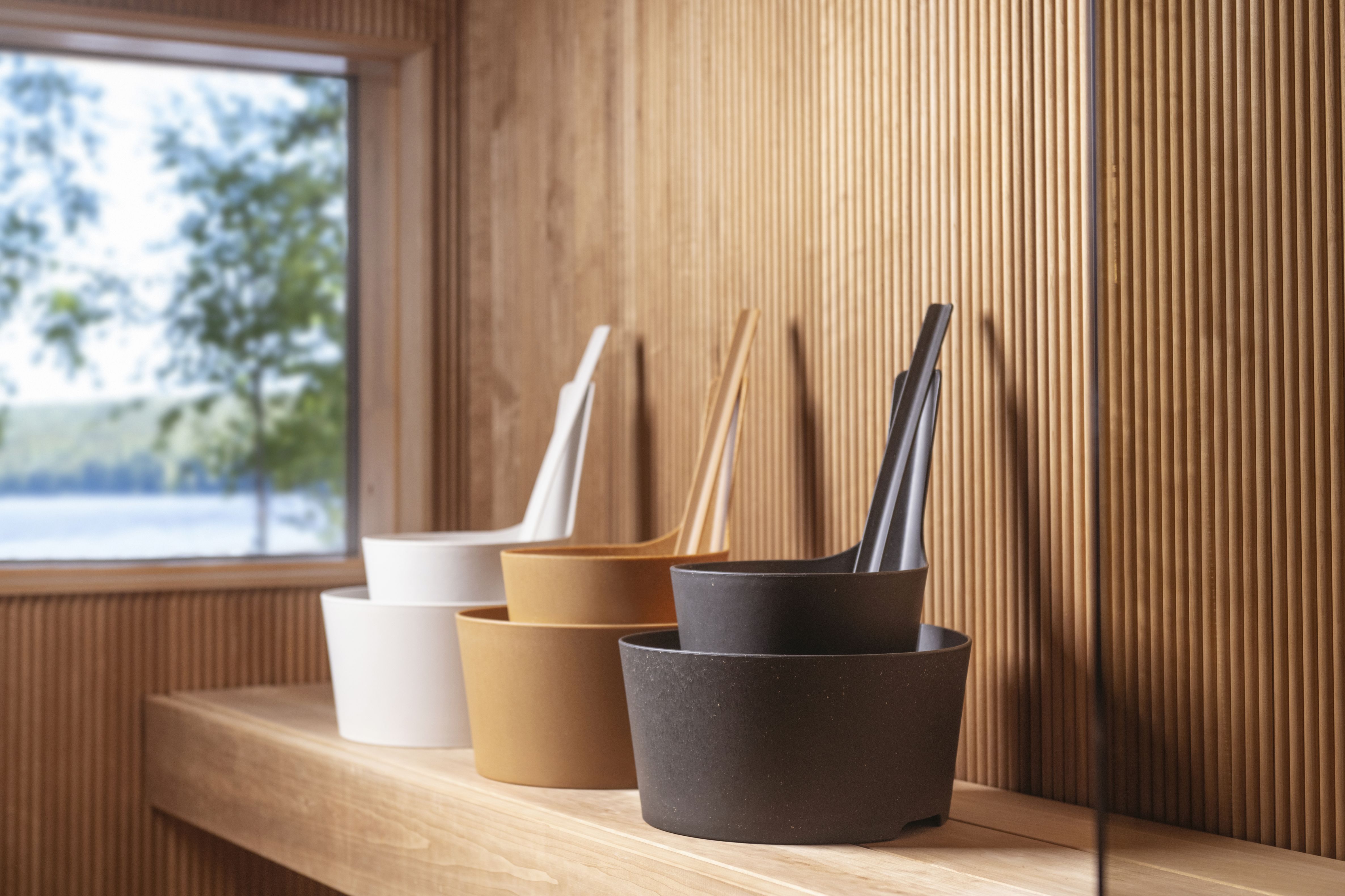 Rento Sauna buckets and ladles continue to be the cornerstone of the Rento range, combining timeless design with user-friendly shapes.
